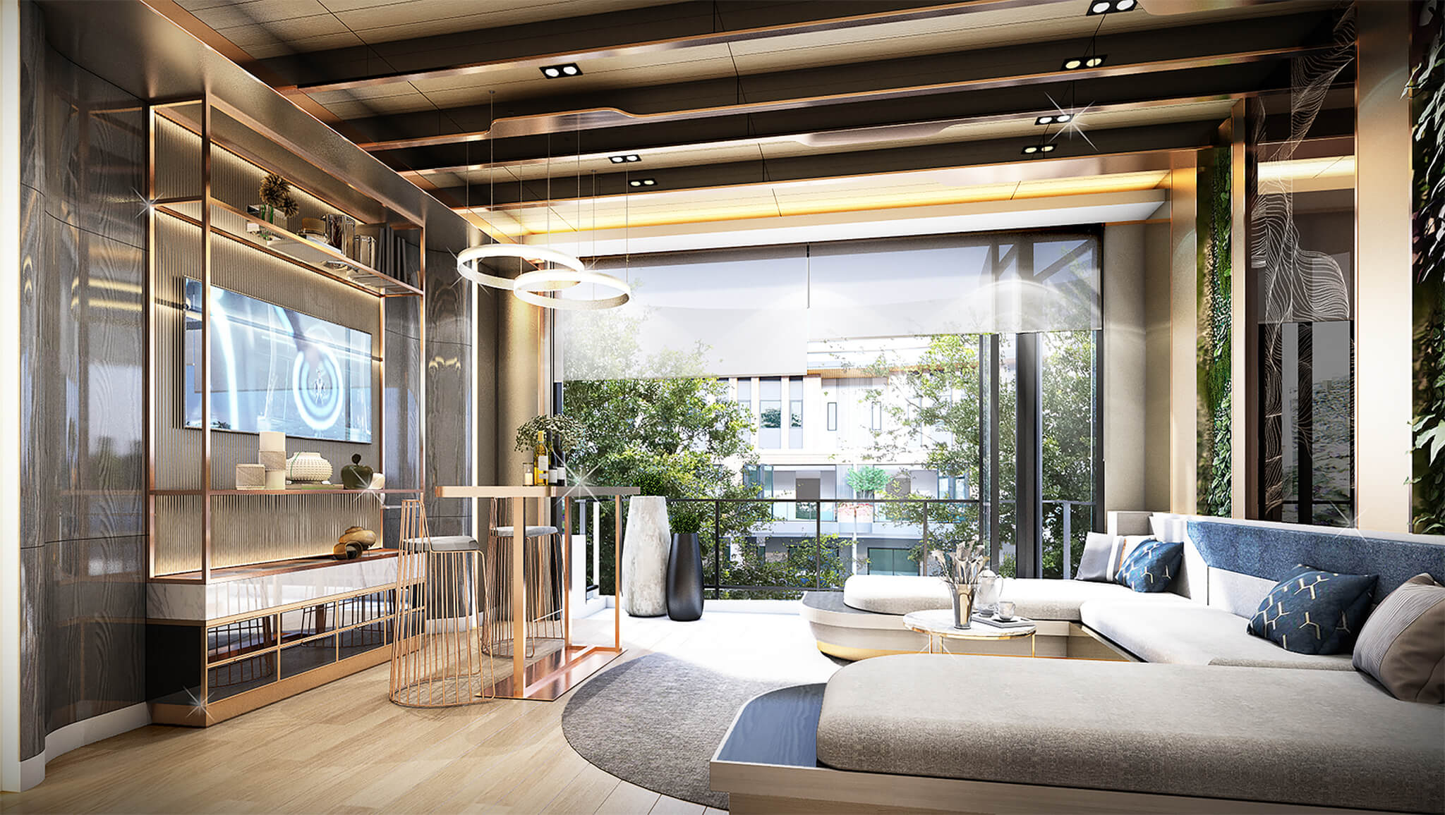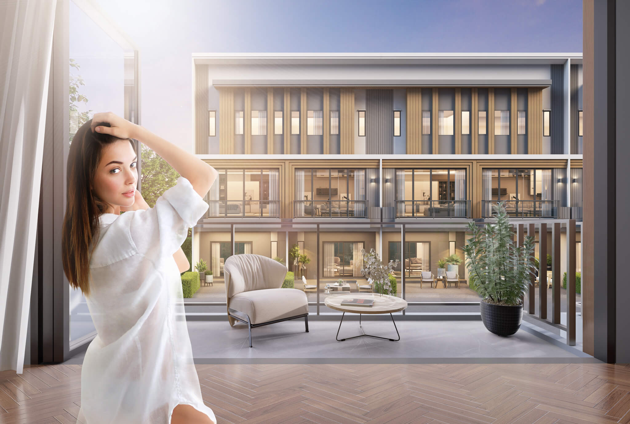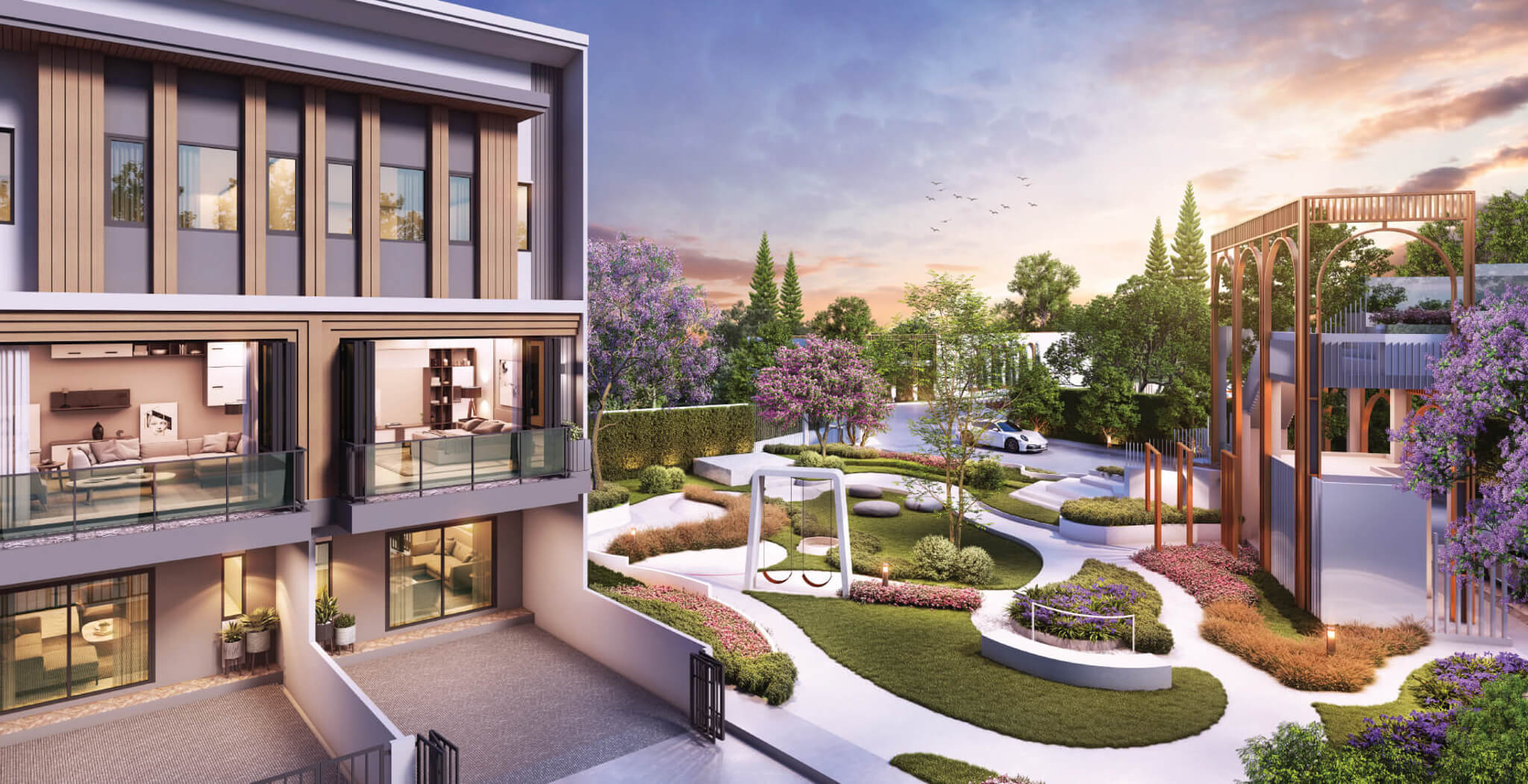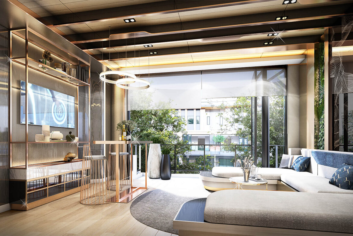 พื้นที่ความสุข สำหรับทุกคน​. พรีเมียม ทาวน์โฮม 3 ชั้น ที่ออกแบบให้พื้นที่ชั้น 2 ห้องรับแขกเชื่อมต่อกับพื้นที่ระเบียงอย่างลงตัว เน้นความโปร่ง และความสว่างจากแสงธรรมชาติ